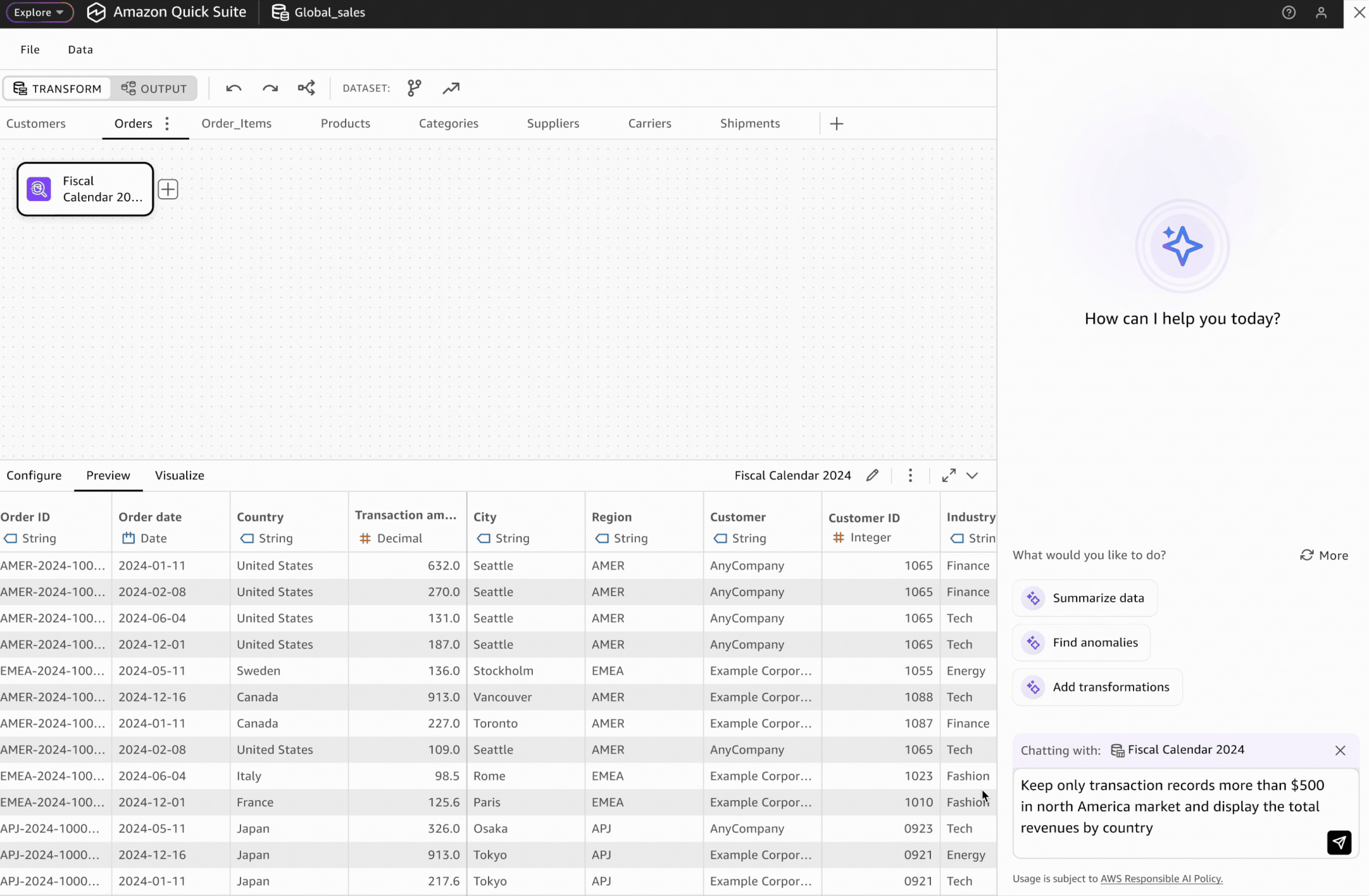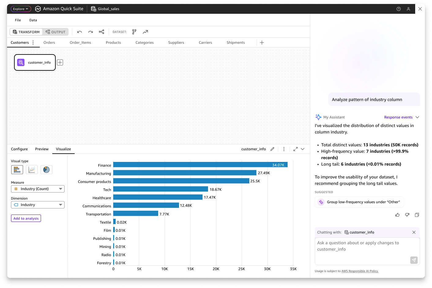 As the sole founding designer, I built Quick Sight data preparation experience from scratch, democratizing data preparation for analysts through an intuitive interface that simplifies data cleaning and semantic enrichment for BI and agentic analytics in Amazon Quick Suite.