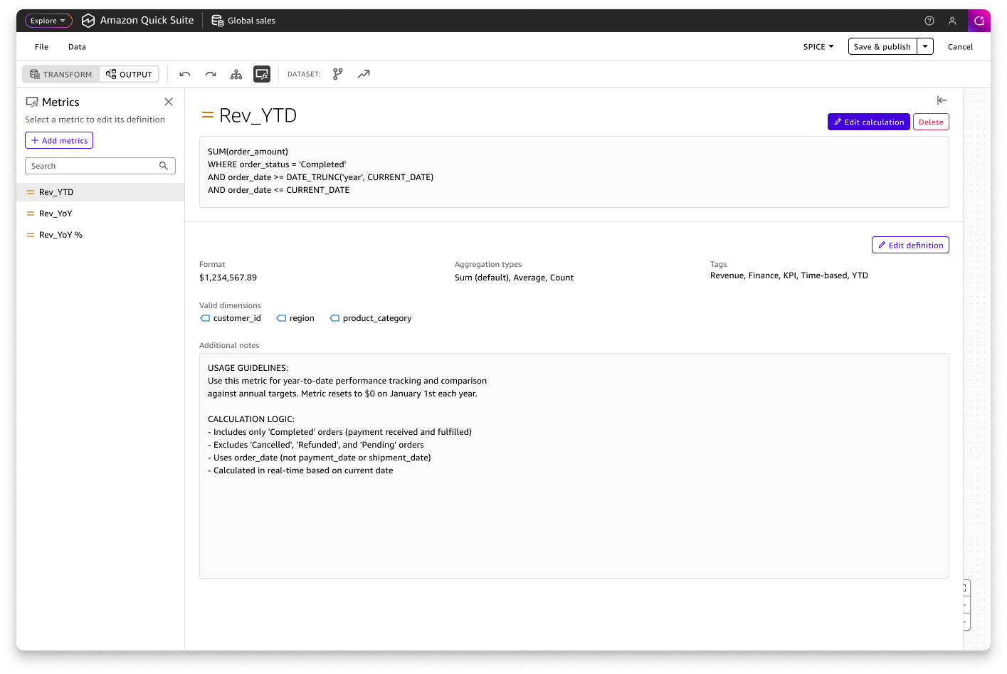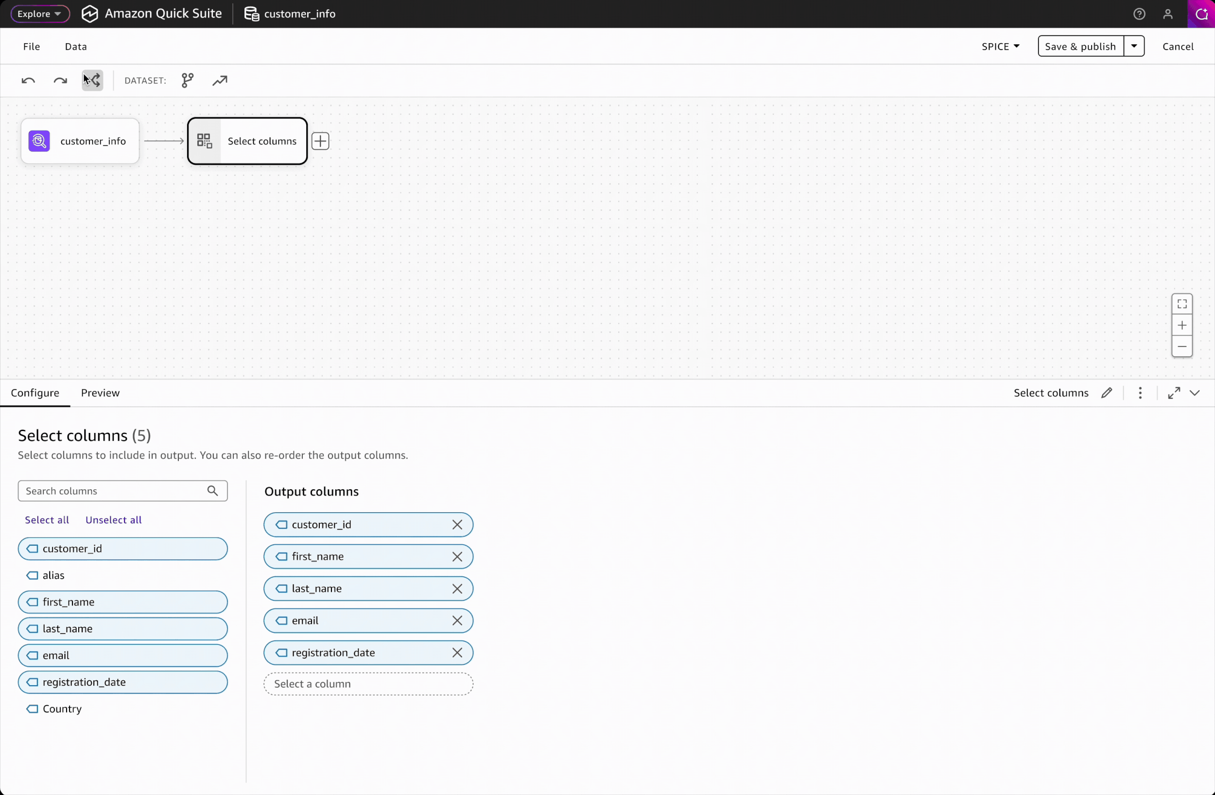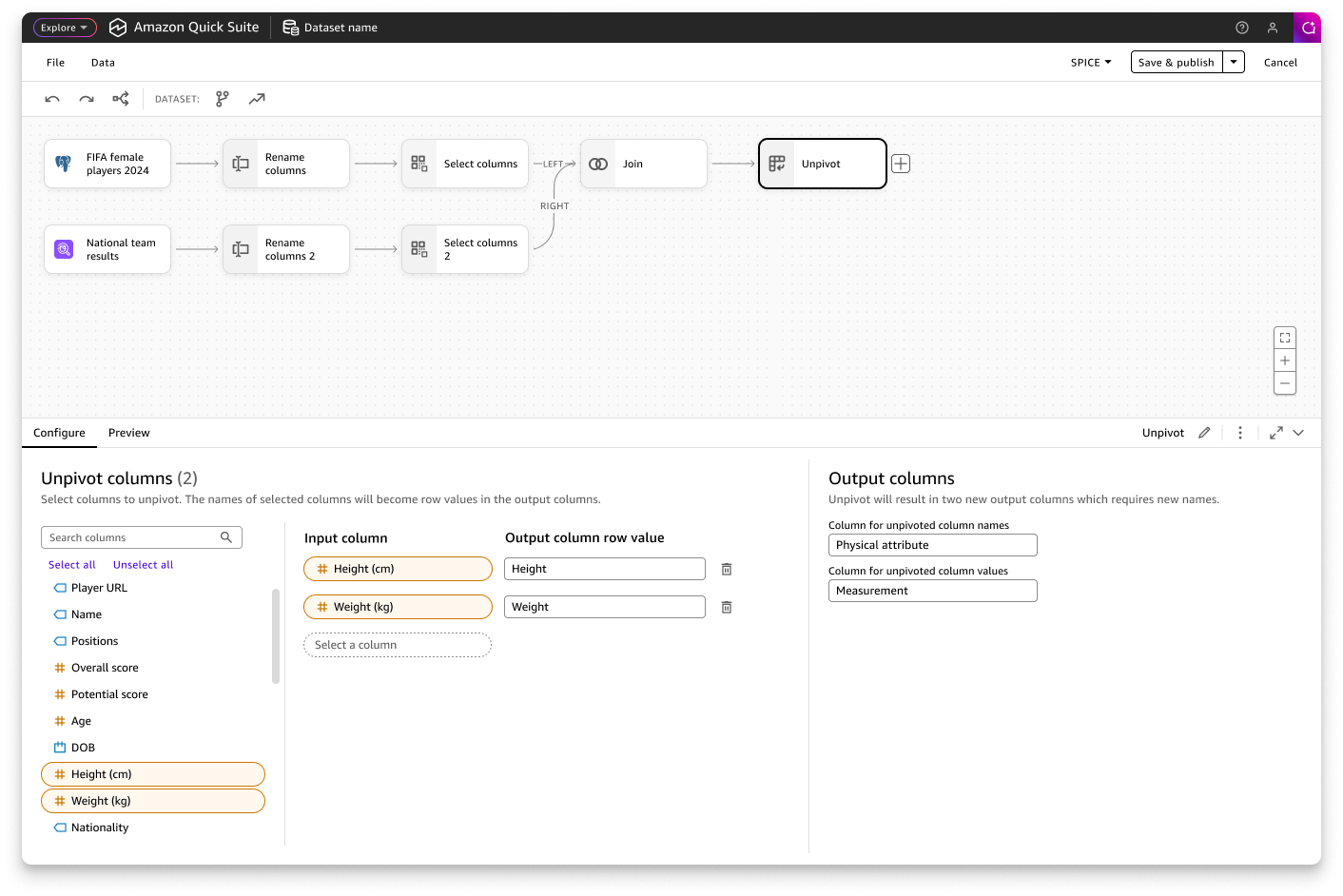 I proactively led a visual refresh of the data transformation workflow to align with Amazon Quick Sight's updated branding and design system.