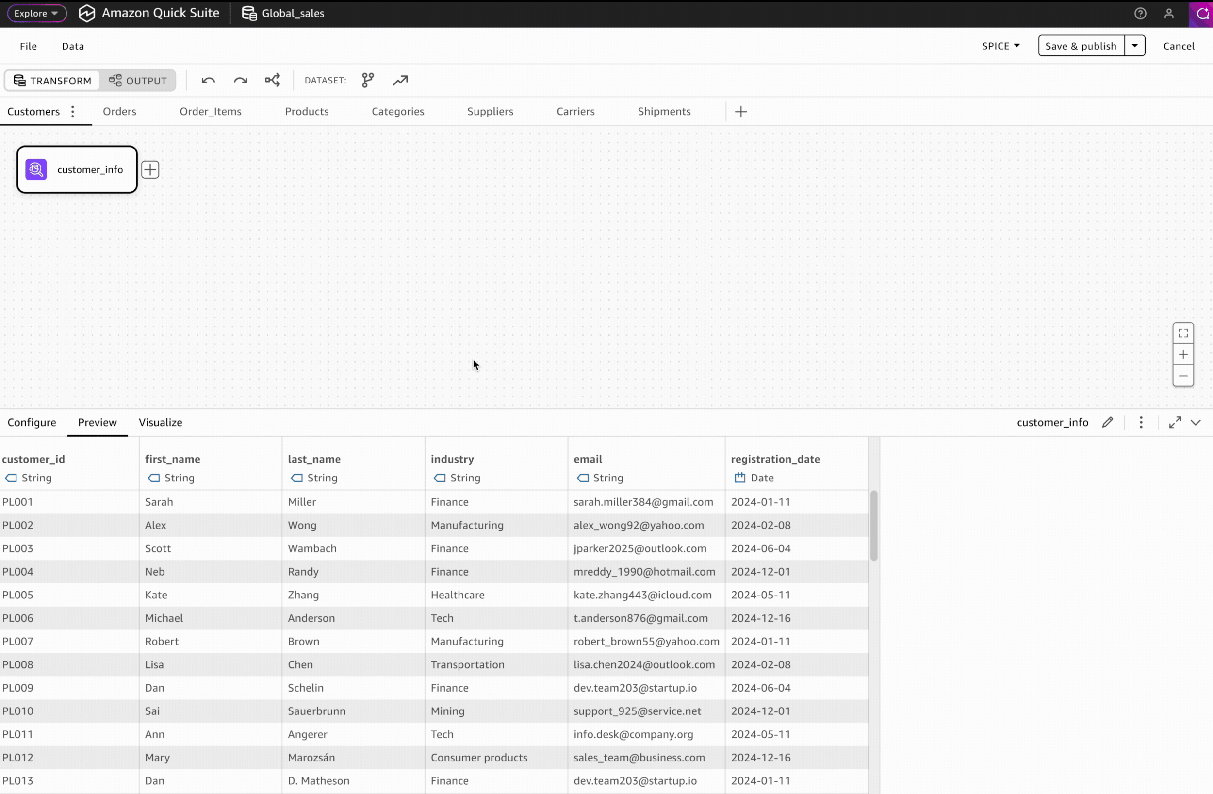 Amazon Quick Sight is a cloud-based business intelligence service that enables organizations to transform raw data into actionable insights at scale. It offers a complete analytics solution, starting with robust data preparation capabilities where users can clean, transform, and model their data. Users can then create interactive dashboards, pixel-perfect reports, and embed analytics directly into their applications. With Quick Sight, organizations can unify their analytics workflow in one platform, making it easier to democratize data across their business.